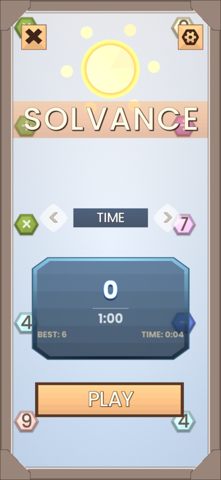 Solvance is a strategic math-puzzler set on a shifting hexagonal grid. Your objective is simple: clear the board by matching numbers or creating mathematical expressions. But there's a twist—every time you clear tiles, the board's geometry shifts as remaining hexagons fall into new positions. You'll need to think steps ahead to keep your chains going and your score climbing.